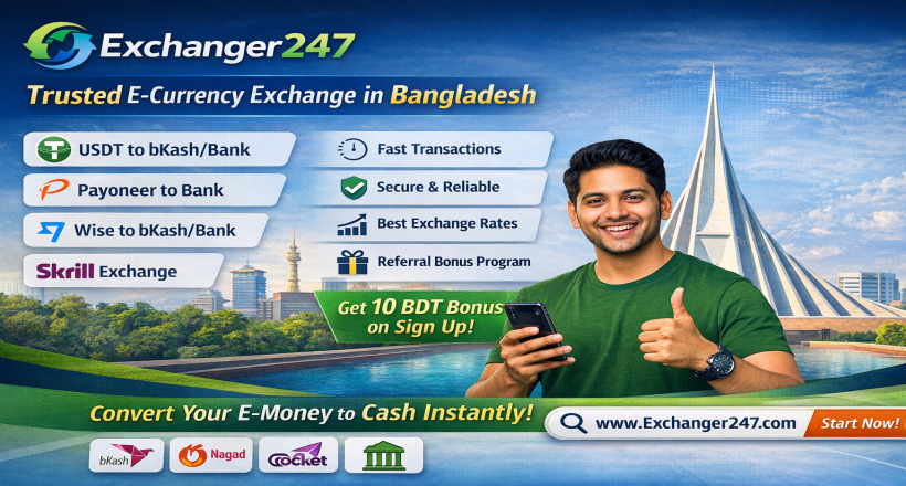 আপনি যদি নিরাপদ এবং দ্রুত উপায়ে আপনার ডিজিটাল ডলার বা ই-কারেন্সি বাংলাদেশি টাকায় রূপান্তর করতে চান, তাহলে Exchanger247 একটি নির্ভরযোগ্য প্ল্যাটফর্ম। সহজ রেজিস্ট্রেশন, দ্রুত ট্রানজেকশন এবং ভালো রেটের কারণে এটি অনেক ব্যবহারকারীর পছন্দ হয়ে উঠছে।